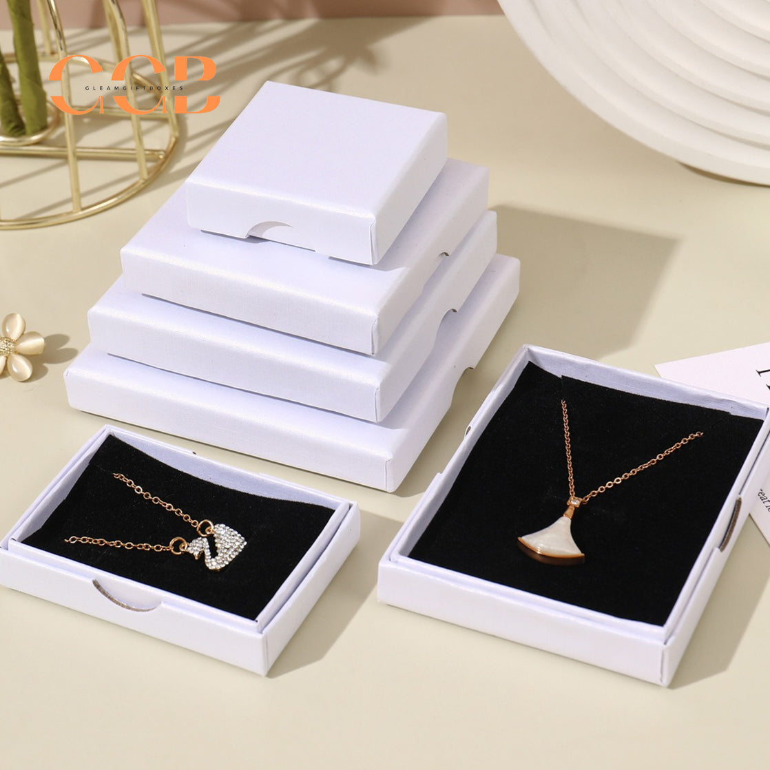 We can customise all different jewelry boxes and packaging we offer. Wholesale orders up to 50% off, discount depends on shipping methods and order quantity. We provide packaging and branding solutions for your e-commerce or retail store display. We also use 3D printing for modeling and can match the design you want—send us an image or idea of the box and displays, and we will work to match it.